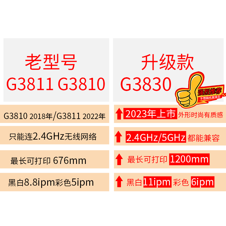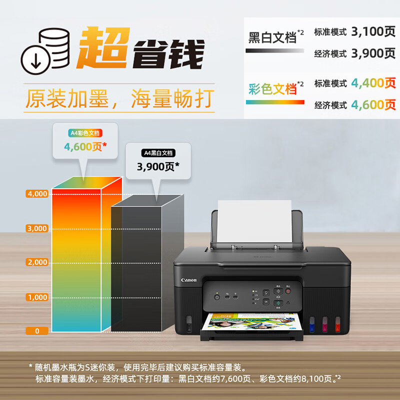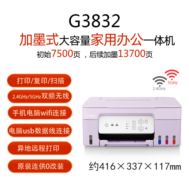 Canon佳能G3830/3832可加墨彩色多功能无线一体机打印/复印/扫描/微信远程WiFi 学生作业/家用G3810/3800升级