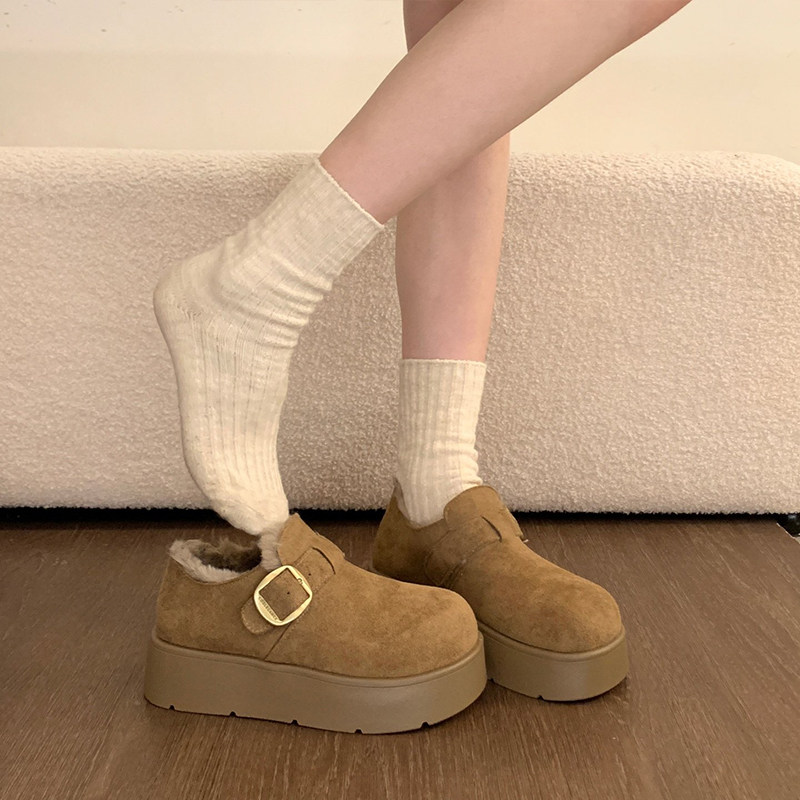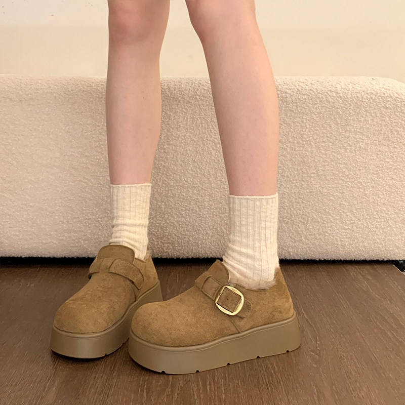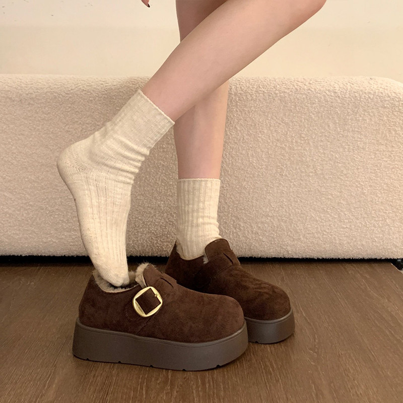 松糕厚底勃肯鞋女鞋2025新款冬季加绒加厚低帮雪地靴勃肯乐福棉鞋
