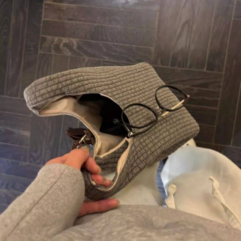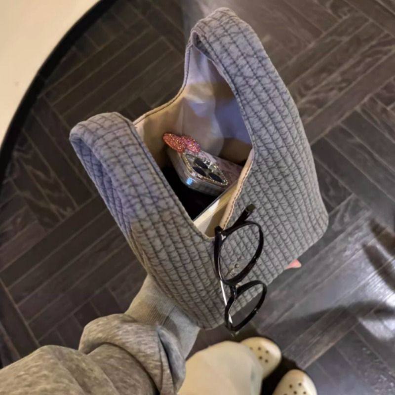 秋冬棉麻手提袋手腕包新款百搭外出上班手拎小包通勤毛绒红色帆布