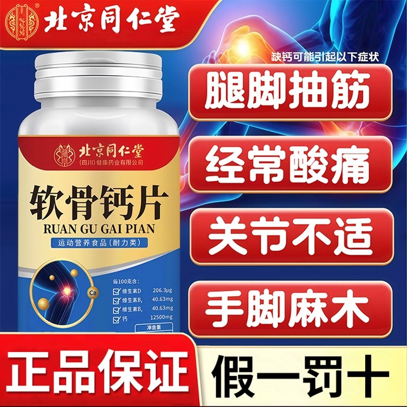 北京同仁堂软骨钙片中老年腿抽筋腰腿疼骨质疏松官方旗舰店正品