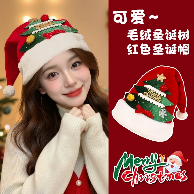 圣诞节装扮圣诞帽2025新款派对毛绒帽氛围感拍照饰品麋鹿帽子头饰