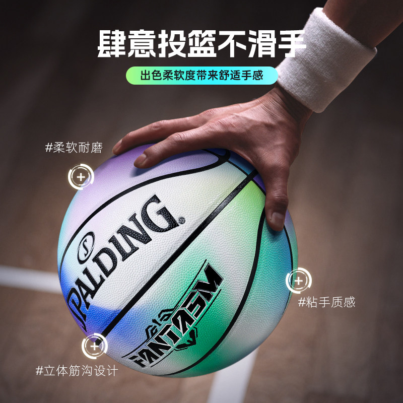 Spalding斯伯丁篮球官方幻白灵境涂鸦吸湿七号PU篮球装备77-758Y