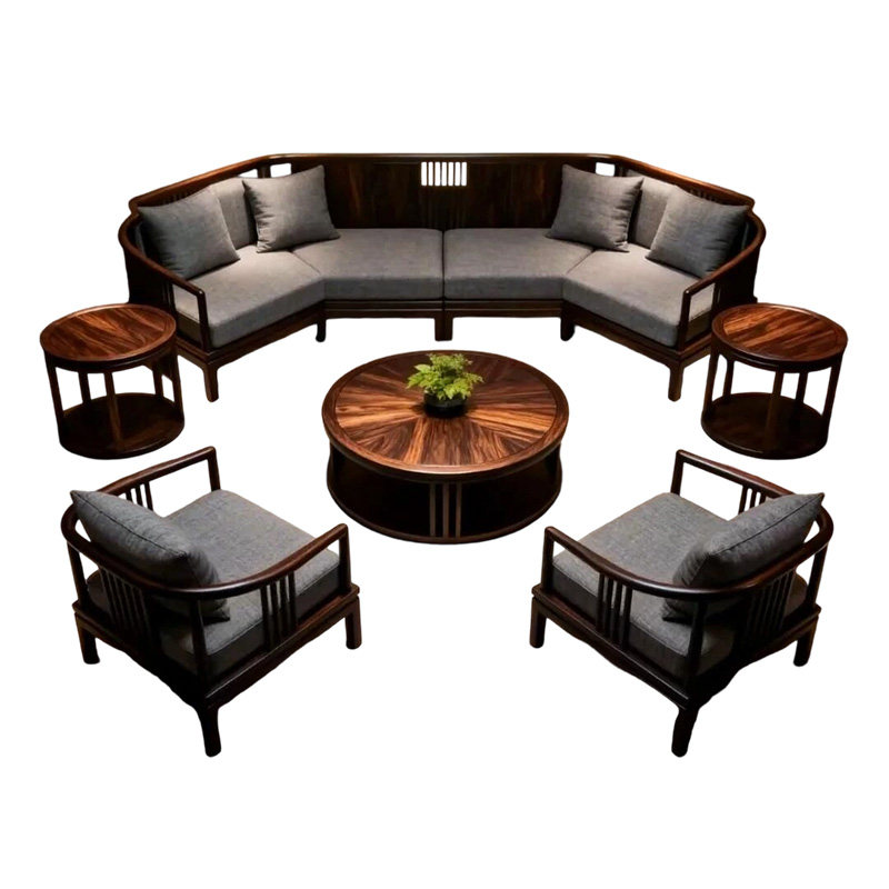 新中式沙发乌金木别墅高档客厅家具组合套装冬夏两用储物沙发实木