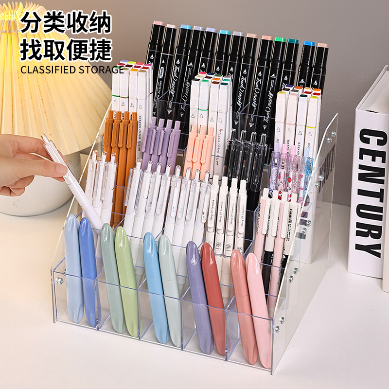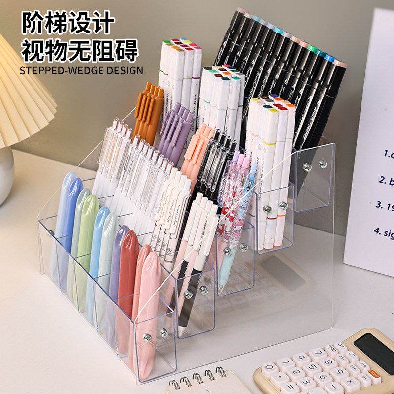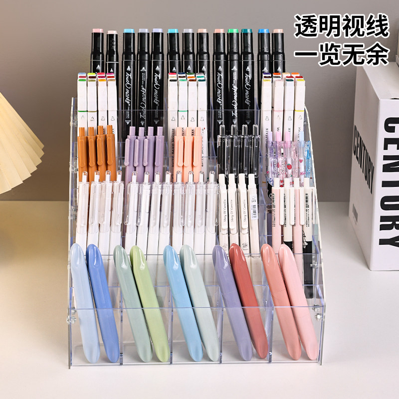 商场超市柜台笔架亚克力展示架文具店笔架置物铅笔中性笔丙烯马克笔圆珠笔收纳盒透明阶梯式大容量陈列架