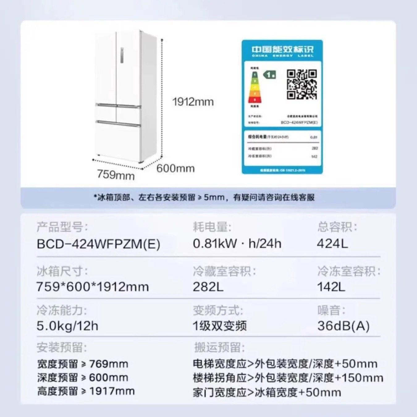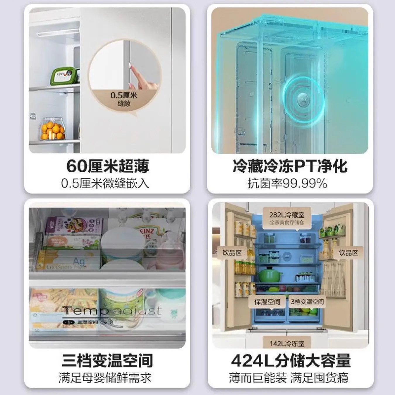 Midea/美的 BCD-424WFPZM(E)无霜变频净味杀菌零嵌入多门智能冰箱