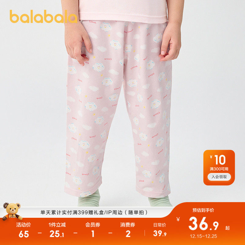 巴拉巴拉儿童睡裤夏季防蚊裤儿童家居裤男女童裤子中大童柔弹舒适