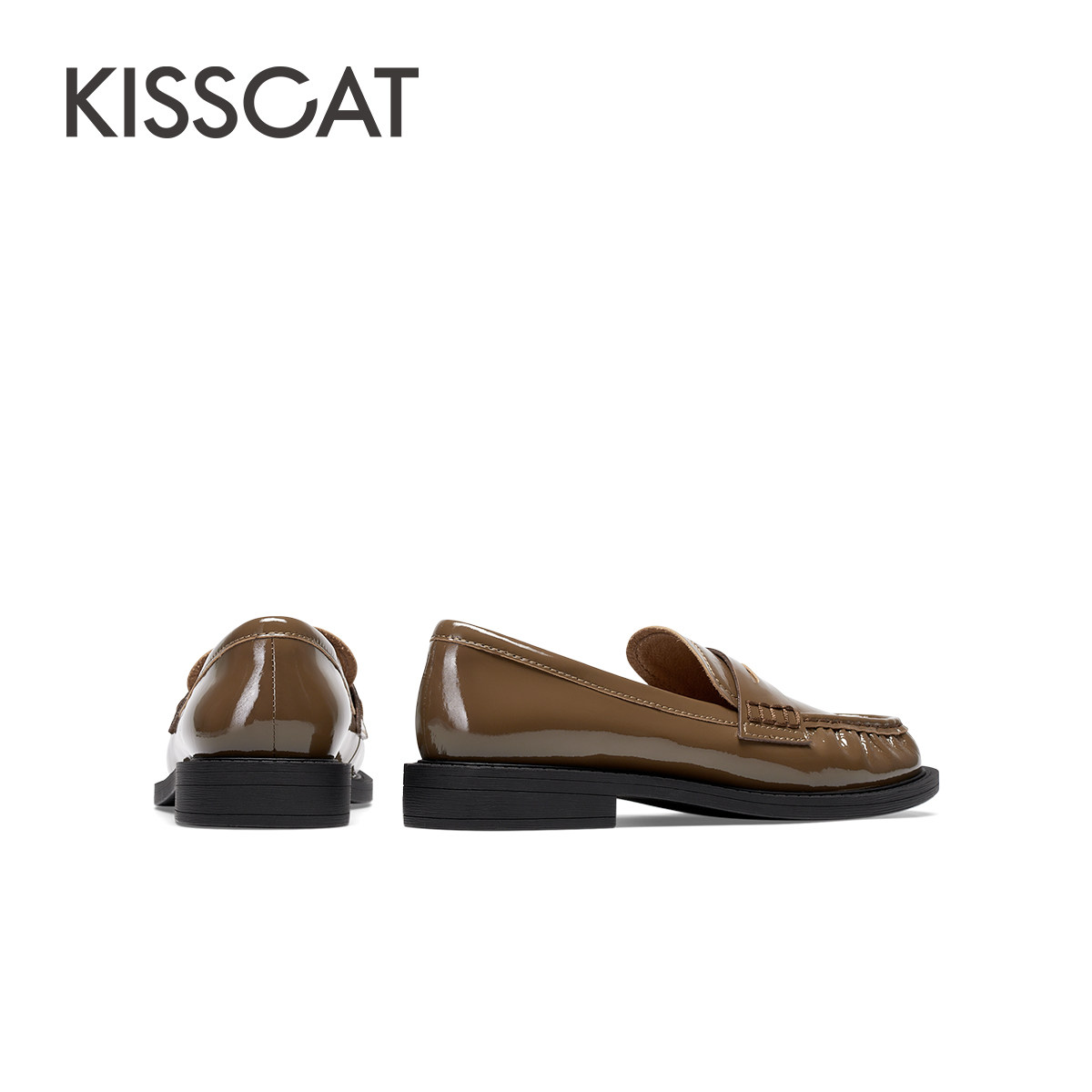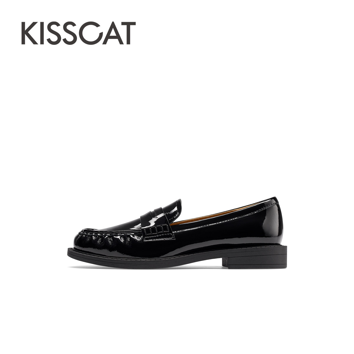 KISSCAT接吻猫秋季新款平底松弛感豆豆鞋真皮英伦乐福鞋女