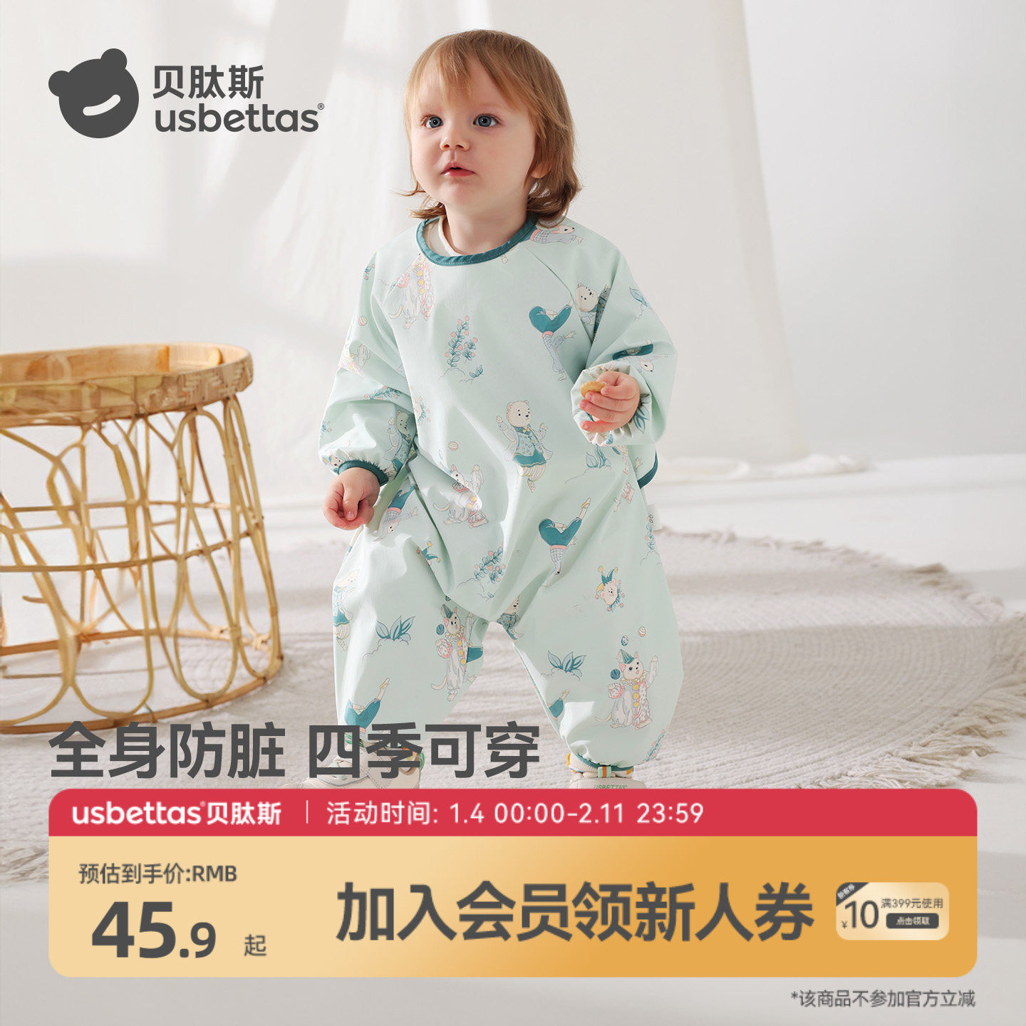 贝肽斯宝宝连体罩衣吃饭防水防脏婴儿爬行辅食围兜儿童围裙爬爬服