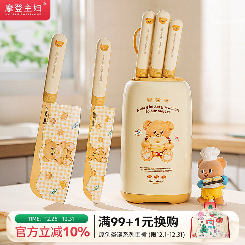 【摩登主妇&黄油小熊】婴儿辅食刀具套装厨房工具菜刀板组合厨具