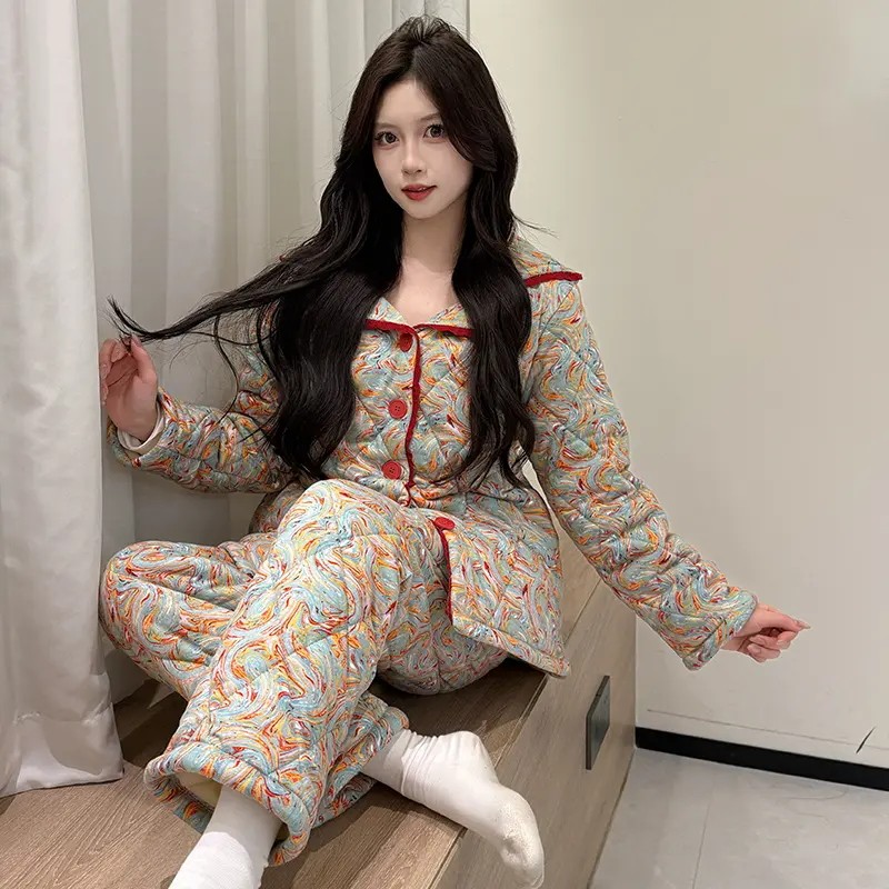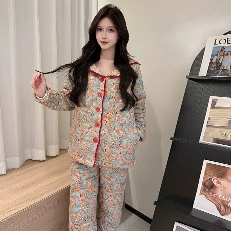睡衣女冬季珊瑚绒2025新款加厚加绒三层夹棉可外穿冬天女生家居服