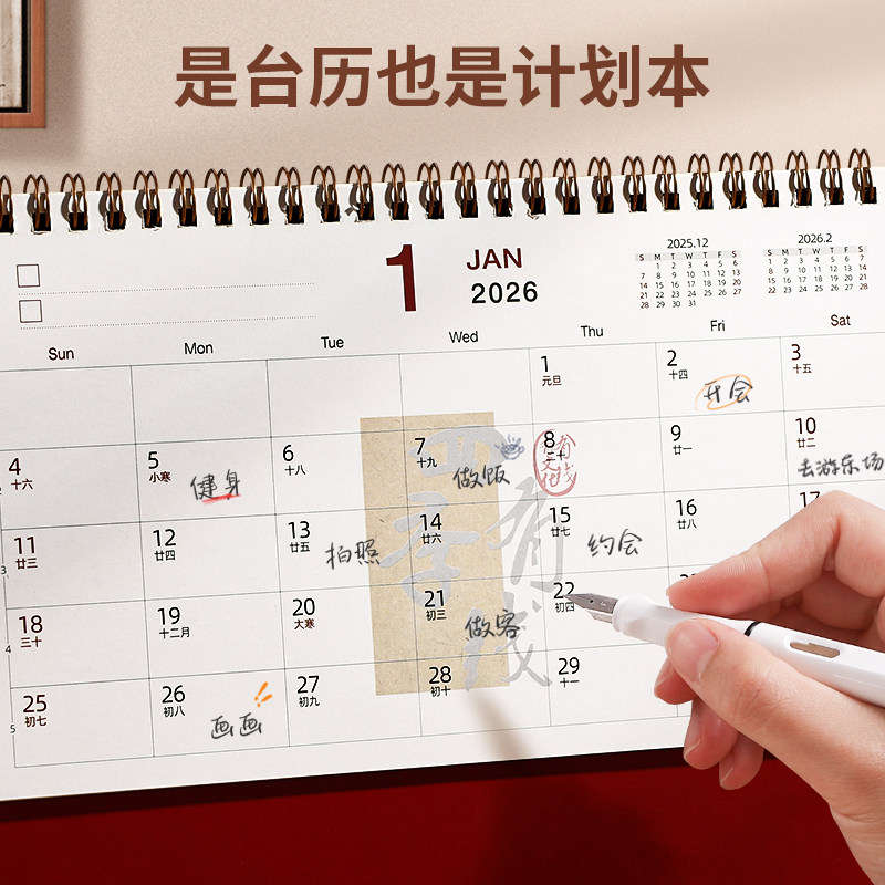 台历2026年新款日历定制logo创意简约小清新韩式办公年历个性中国风桌面摆件商务工作记事计划本订制广告月历
