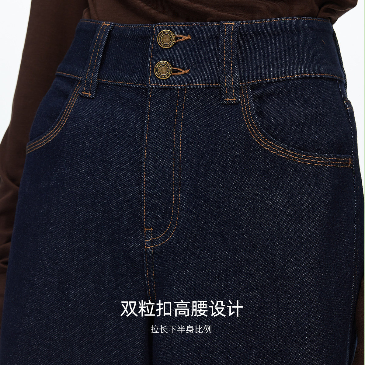 三福牛仔长裤2025新款冬季磨毛阔腿裤复古深色宽松裤子女装512304
