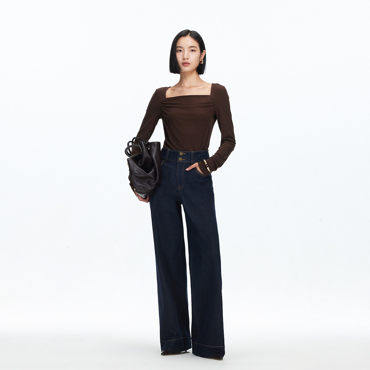 四面弹丹宁色牛仔阔腿裤25年新款宽松显瘦牛仔长裤89173