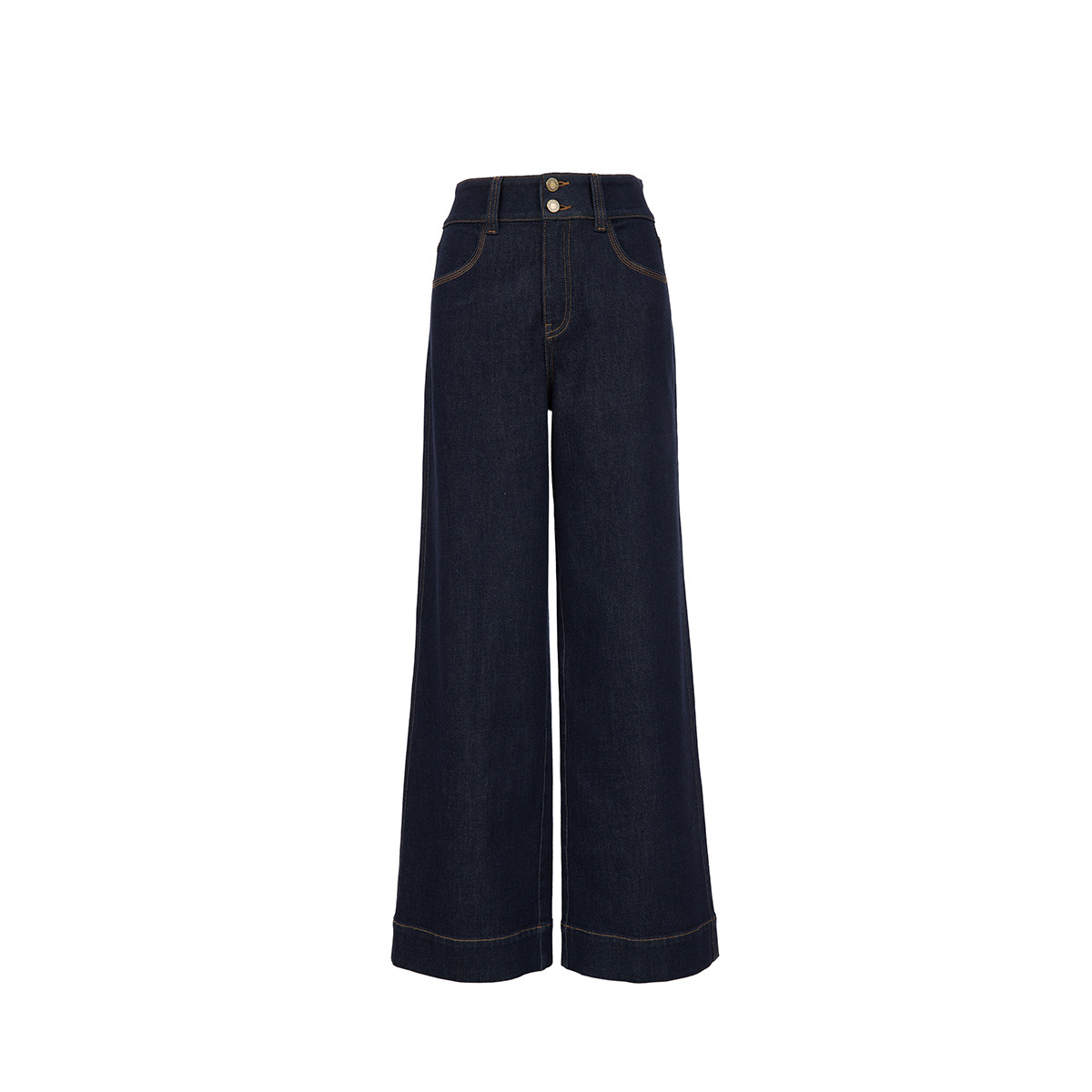 Vero Moda奥莱牛仔裤女2025秋冬新款含棉双粒扣高腰阔腿裤优雅