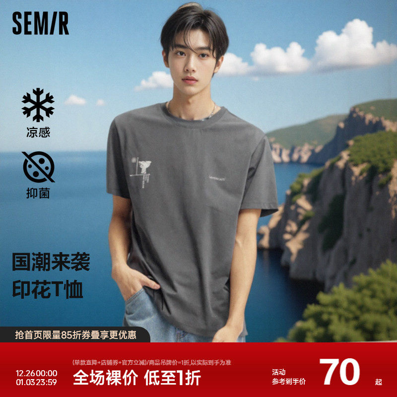 森马短袖T恤男装夏季凉感抑菌国风印花上衣青少年圆领休闲装时尚