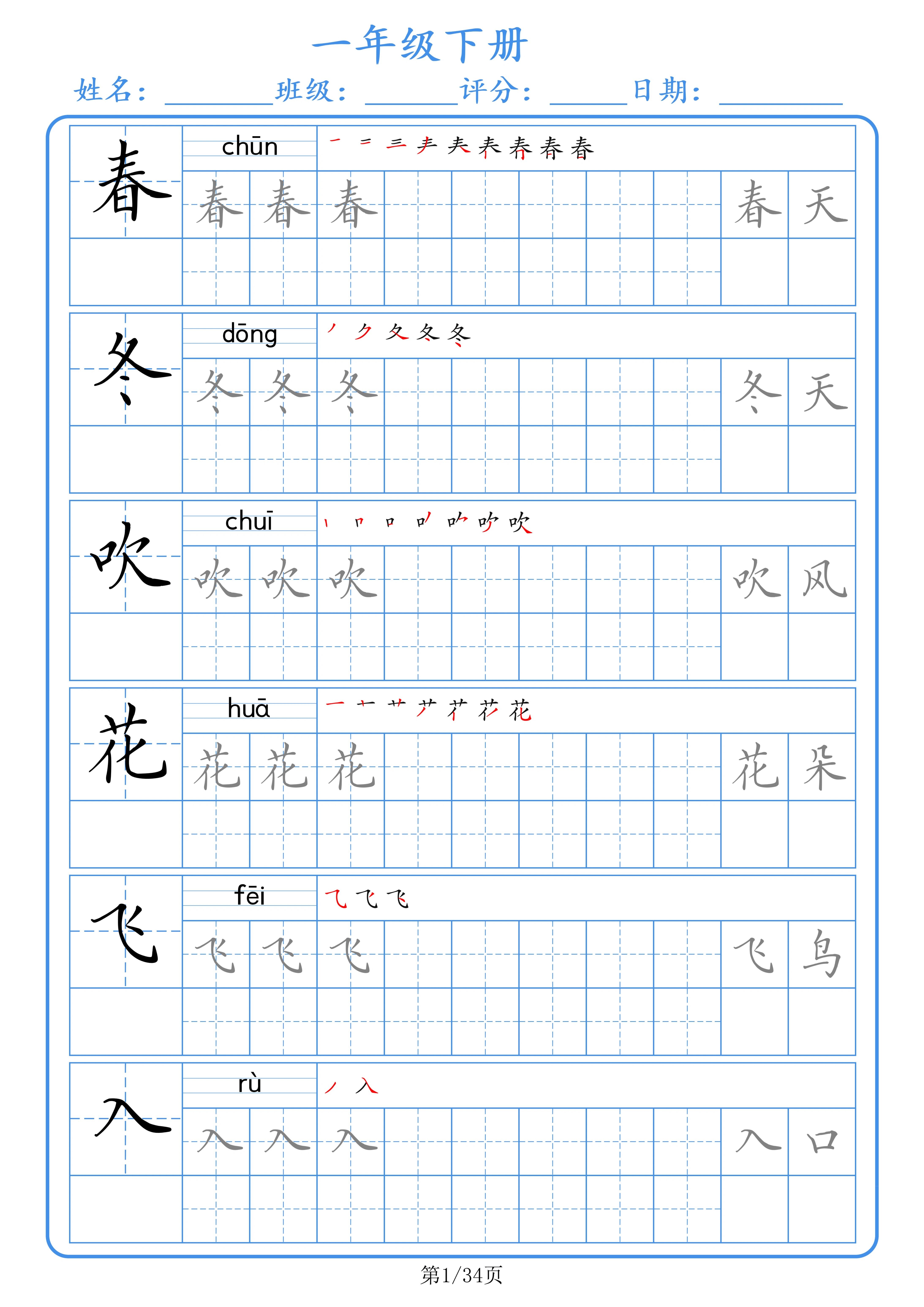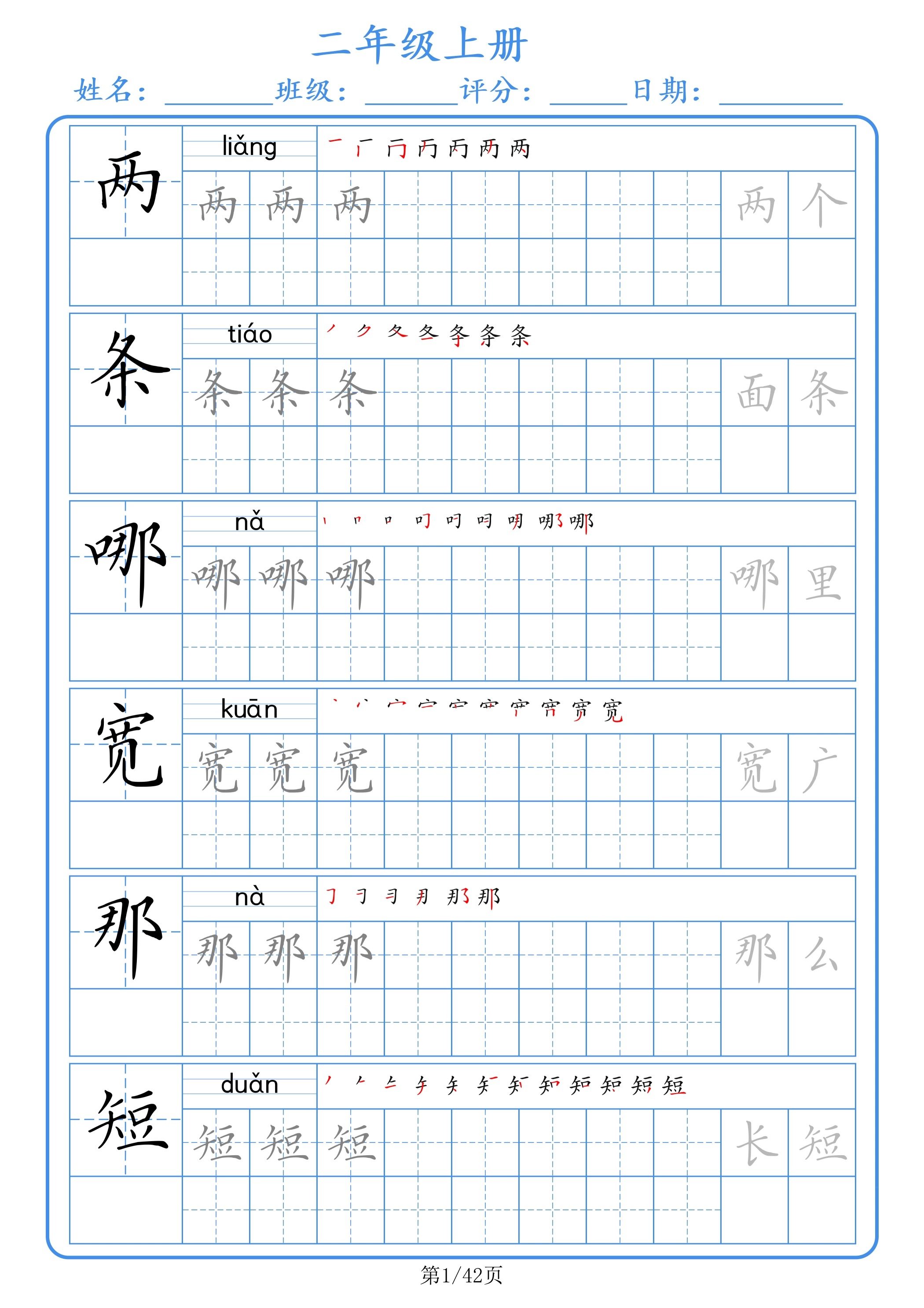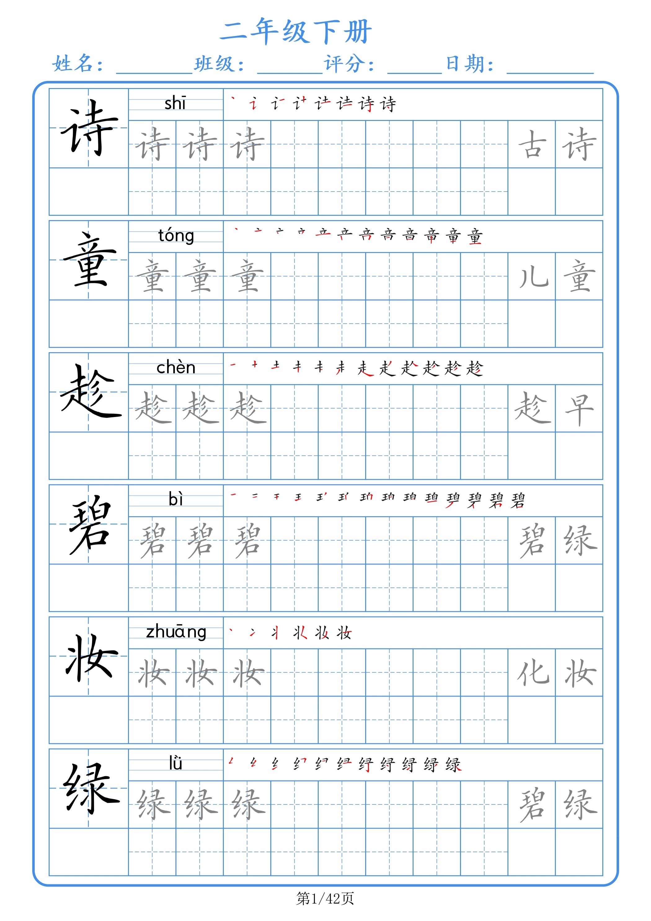 二年级下册人教版一三四五六年级组词拼音笔顺硬笔书法同步练字帖