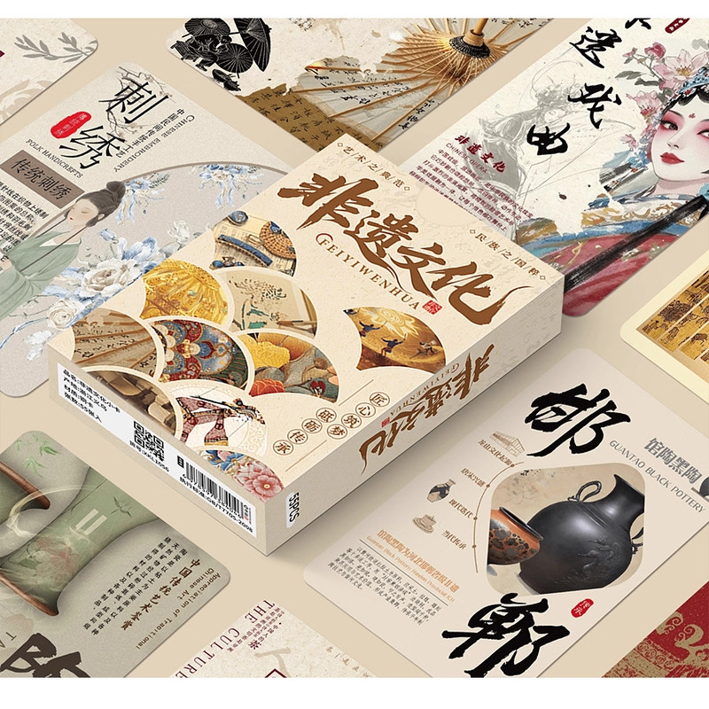 55张非遗文化小卡中国戏曲皮影剪纸木雕陶瓷清明河上图传统周边