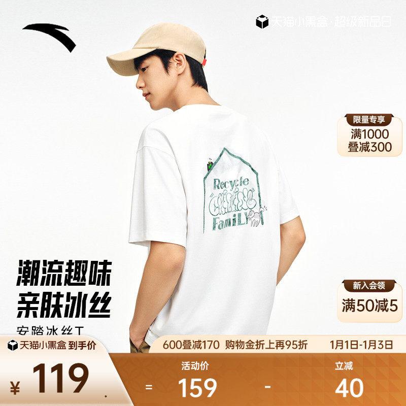 安踏情侣圆领短袖t恤男女夏季休闲上衣宽松透气冰丝半袖172538104