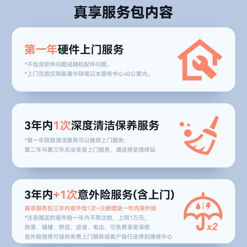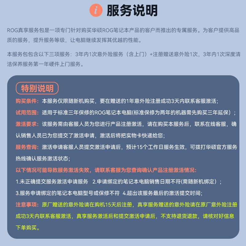 ROG真享服务包(3年一次意外险+第1年硬件上门+3年清洁服务一次)