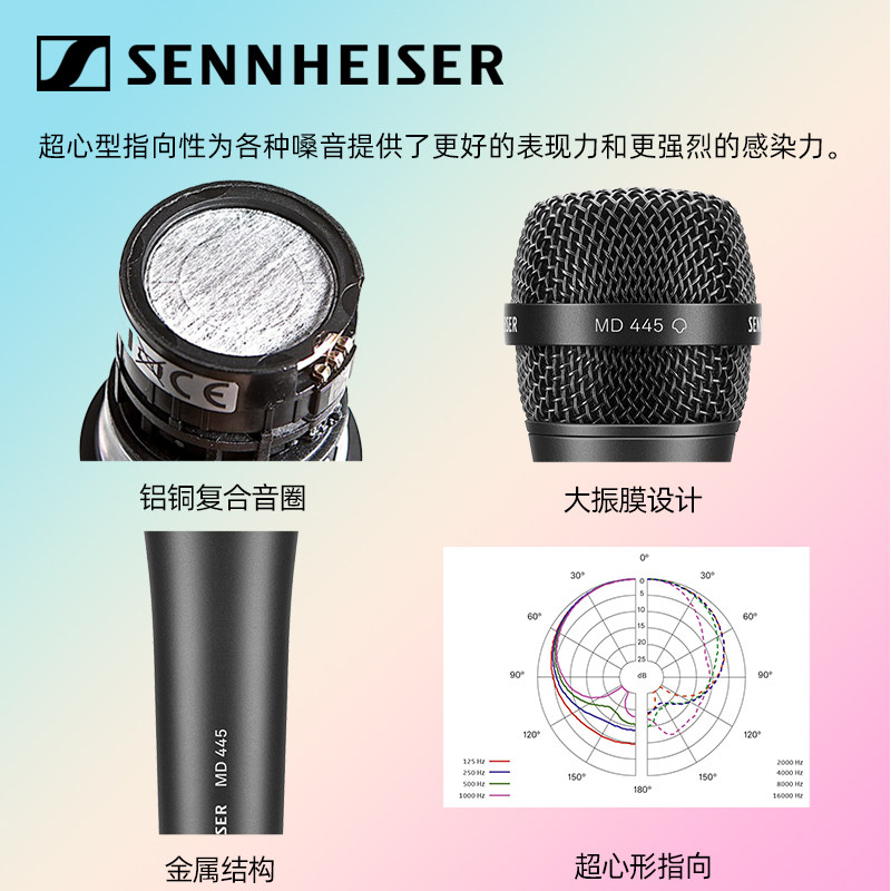 森海塞尔MD445 435有线麦克风专业演出手持直播K歌话筒声卡套装