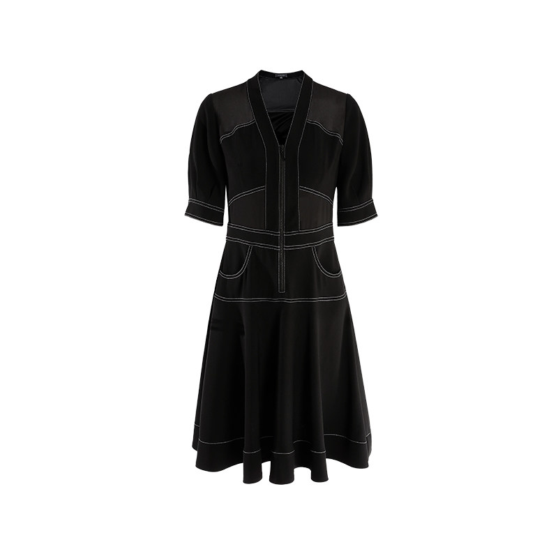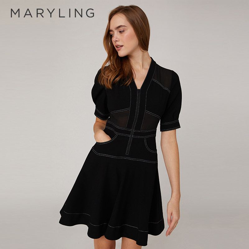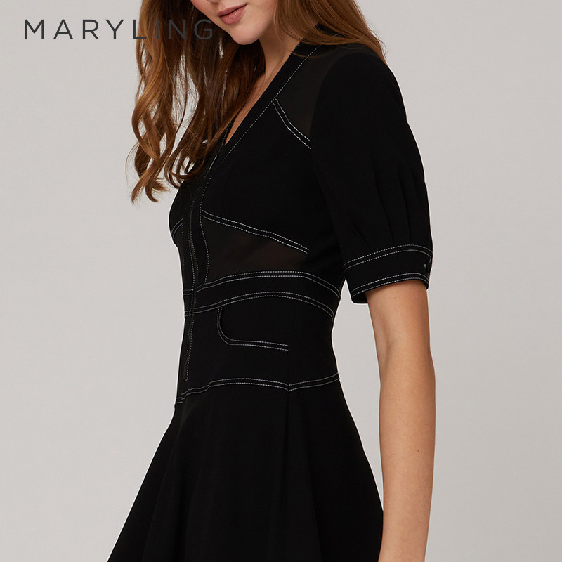 MARYLING玛俪琳夏季黑色明线拼接撞色连衣裙A1CCW62590