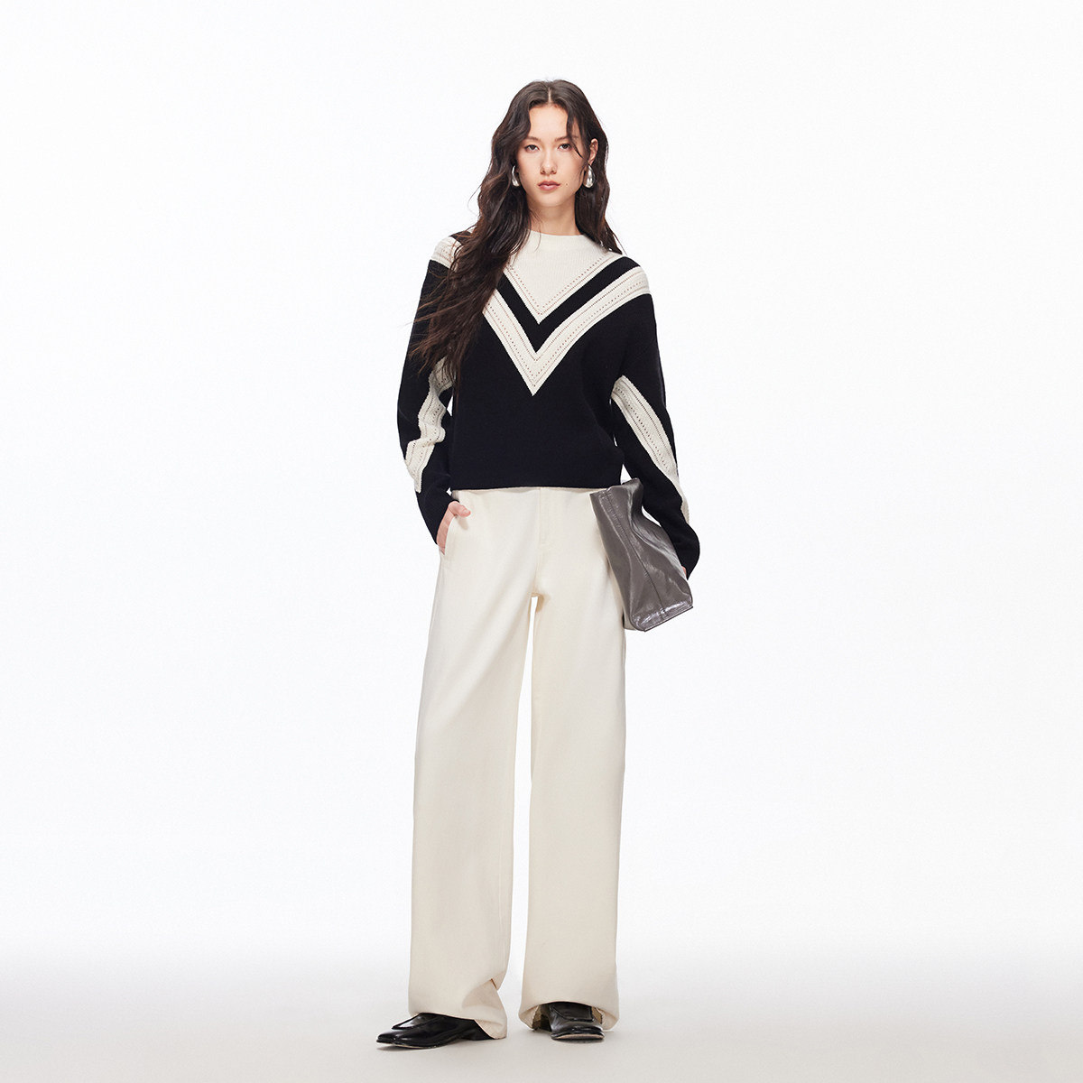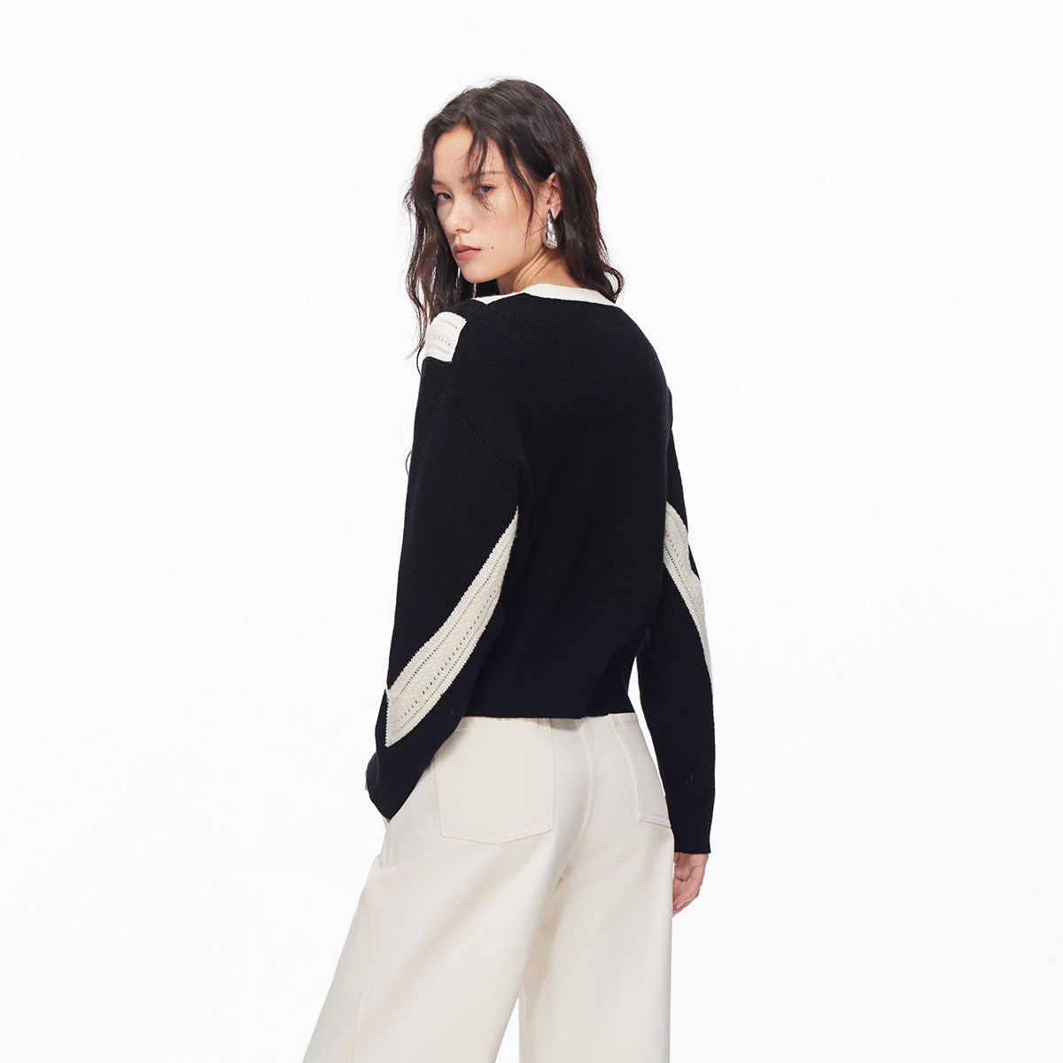 Vero Moda毛衣女26春季新款含绵羊毛V字图案撞色针织衫326113026