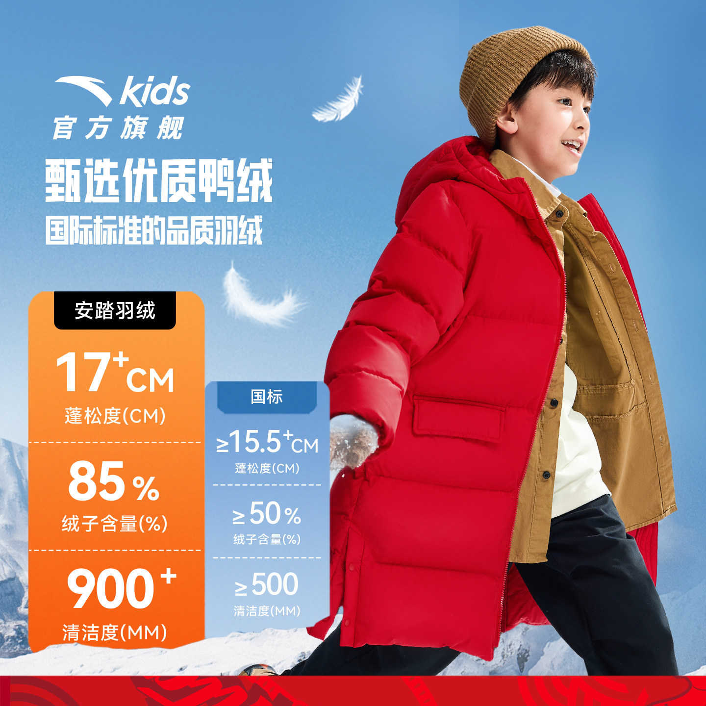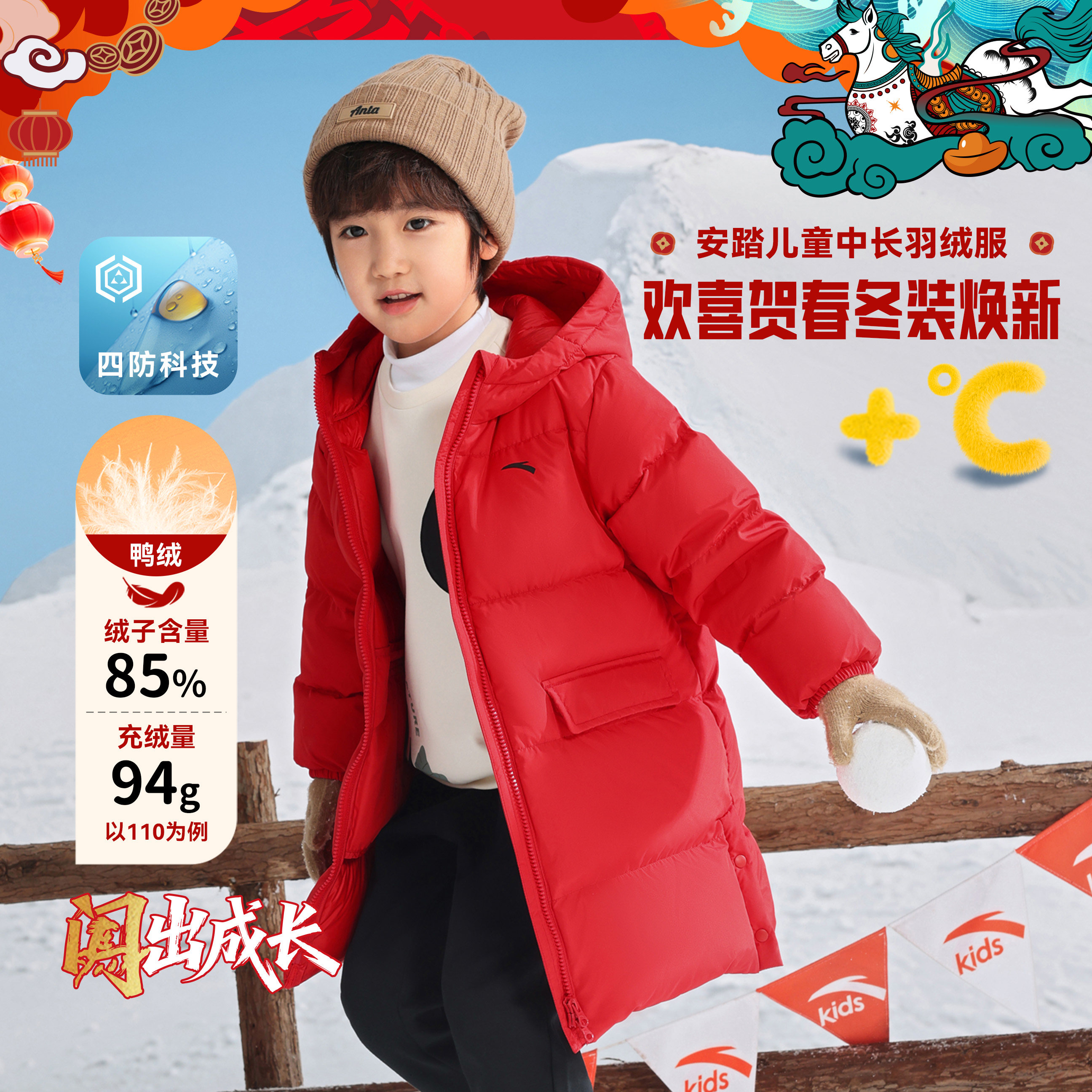 蓬蓬羽-安踏儿童四防羽绒服小童中长款2025冬新款舒适保暖厚外套
