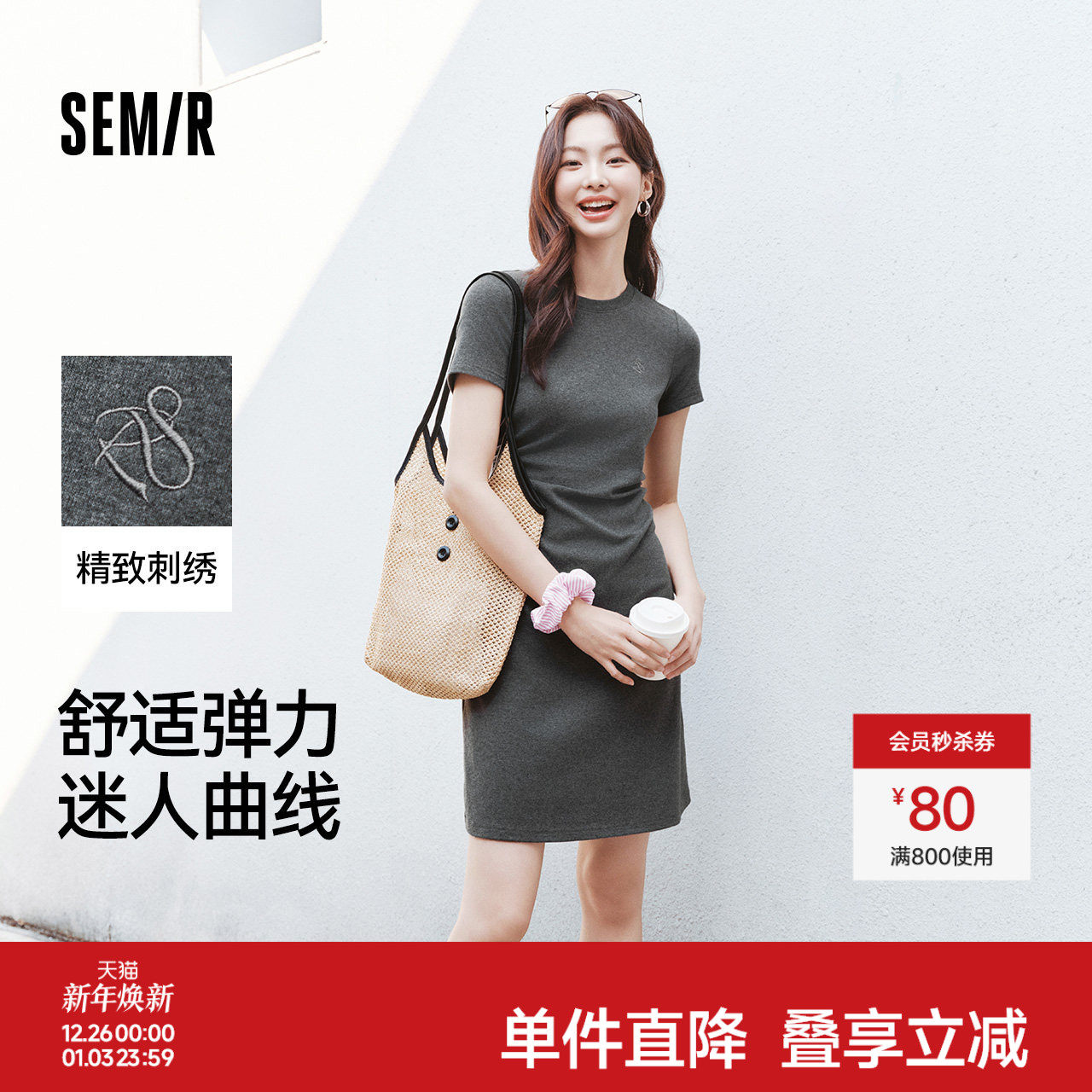 森马连衣裙女收腰T恤裙小心机夏季2025新款绣花圆领短裙简约休闲