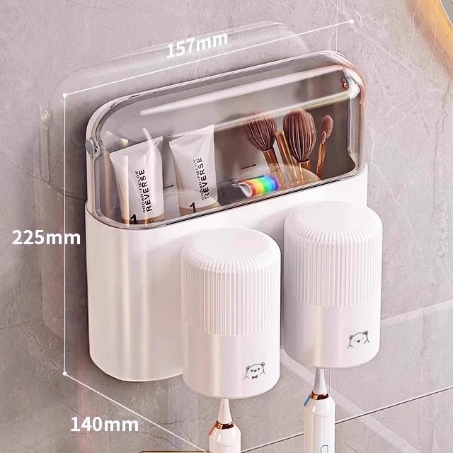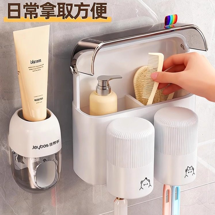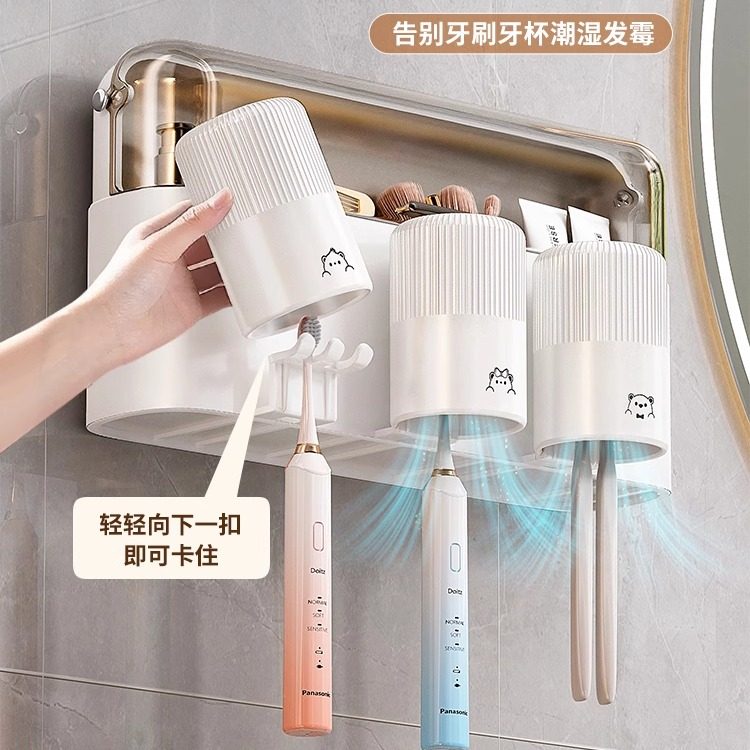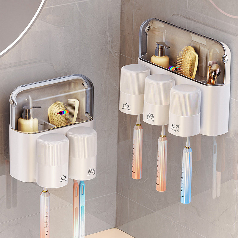 佳帮手防尘牙刷置物架子卫生间壁挂免打孔家庭电动牙膏漱口杯牙杯