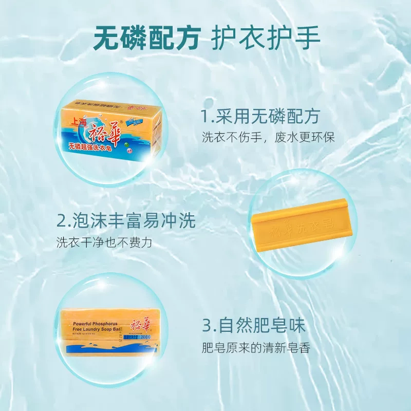 裕华上海无磷超强洗衣皂200g*3块家庭装去污护衣国货老肥皂老牌
