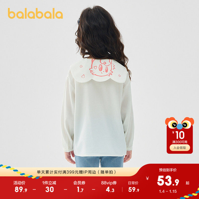 巴拉巴拉儿童衬衫女童装2025春装新款宝宝小童长袖上衣大翻领衬衣