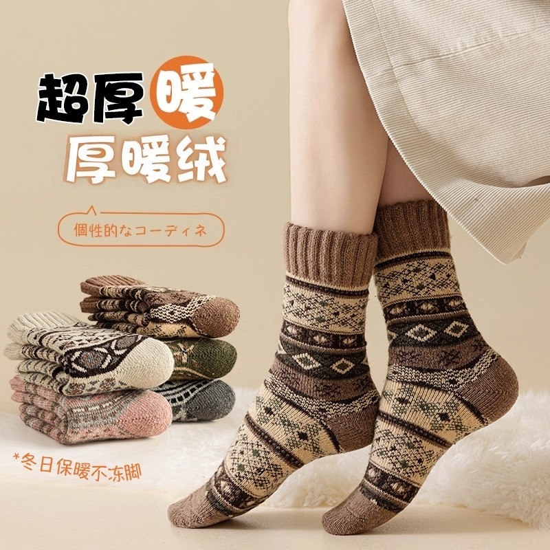 耐尔绵羊毛袜子女秋冬长袜加厚保暖复古百搭中筒袜ins潮堆堆袜