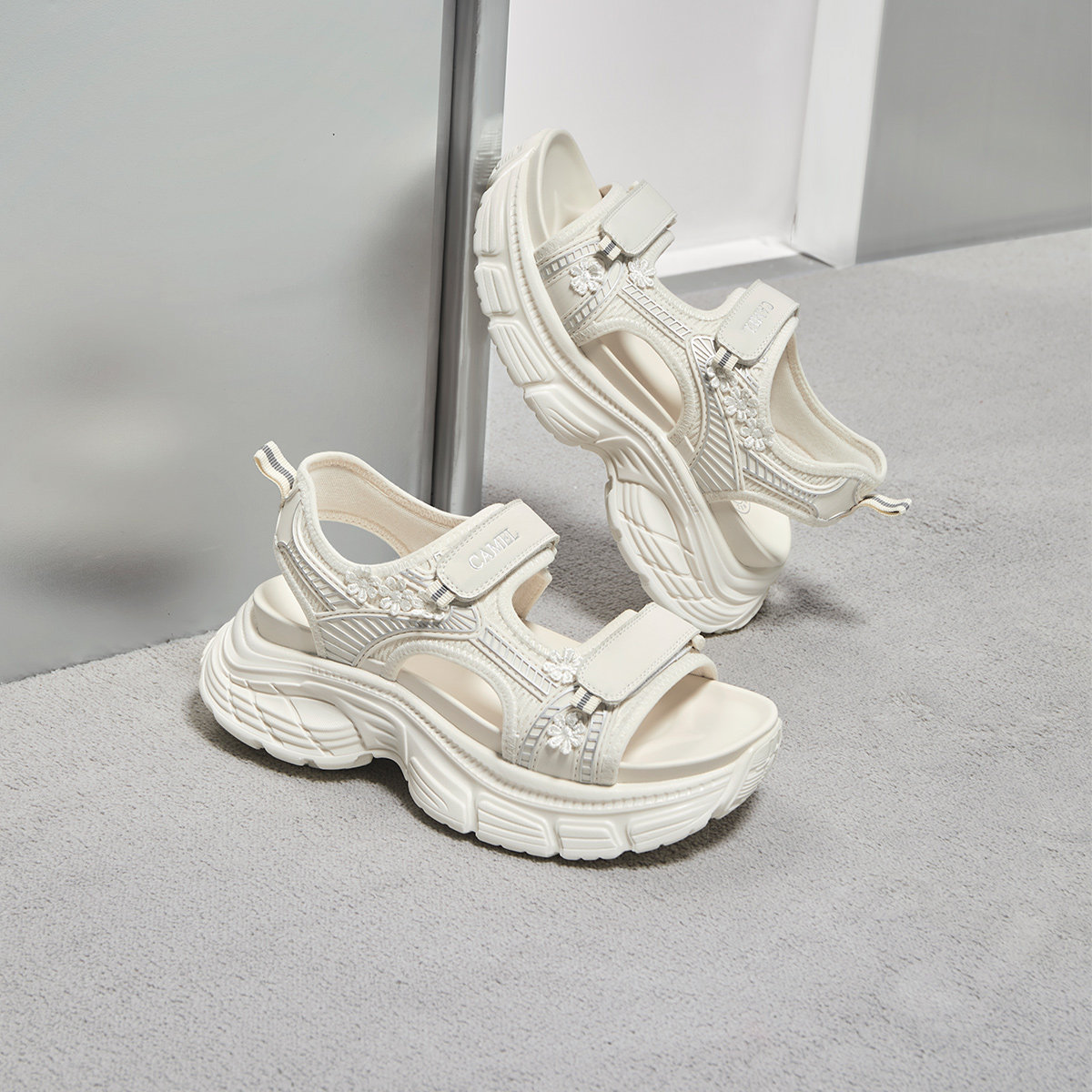 骆驼女鞋2025夏季新款厚底增高休闲凉鞋运动休闲百搭沙滩鞋女款