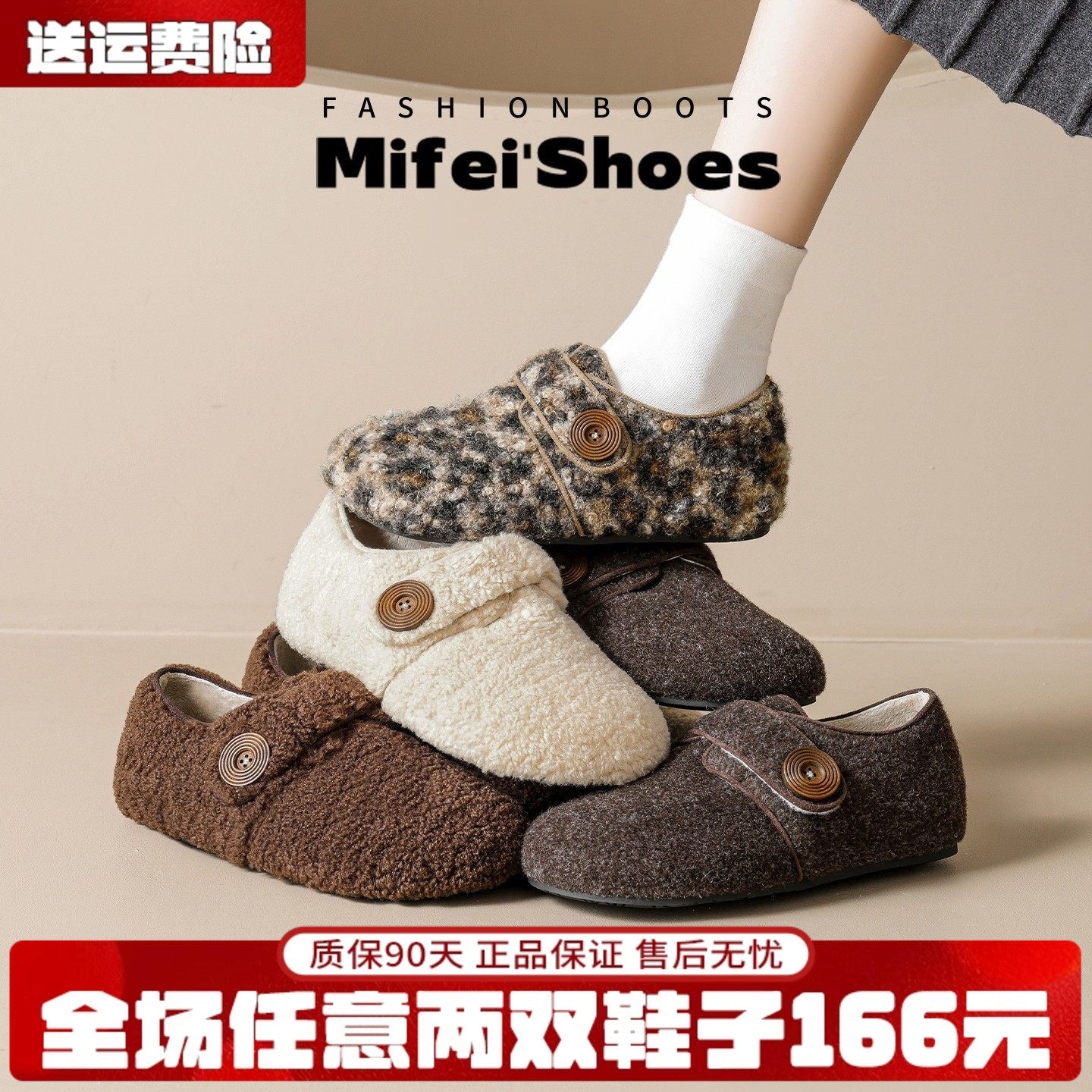 TATAFOCUS~加绒毛毛鞋韩版圆头皮带扣2025冬季新款勃肯鞋女35-28