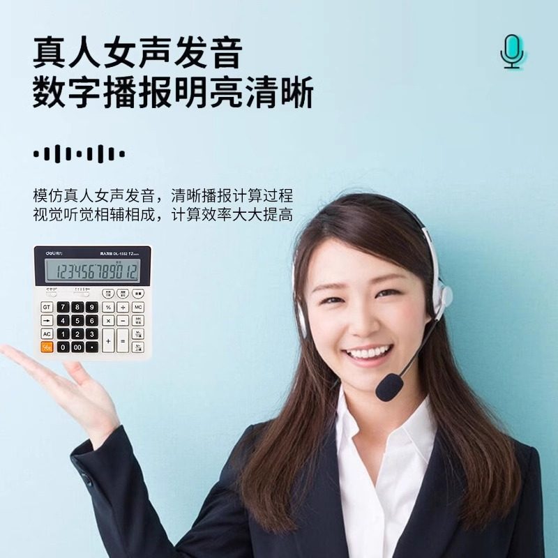 得力计算器语音款用办公室计算机器大号大按键大屏幕财务会计专用1552语言计算器电脑智能大屏文具用品