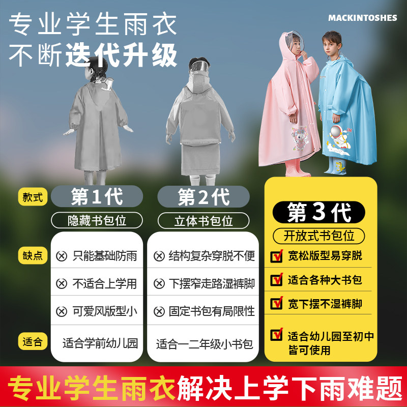 儿童雨衣上学专用男女孩长款全身防暴雨初中小学生大童自行车雨披
