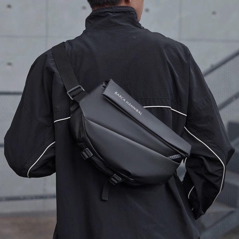2025新款男士斜挎包防水运动单肩包休闲大容量胸包磁吸扣通勤时尚