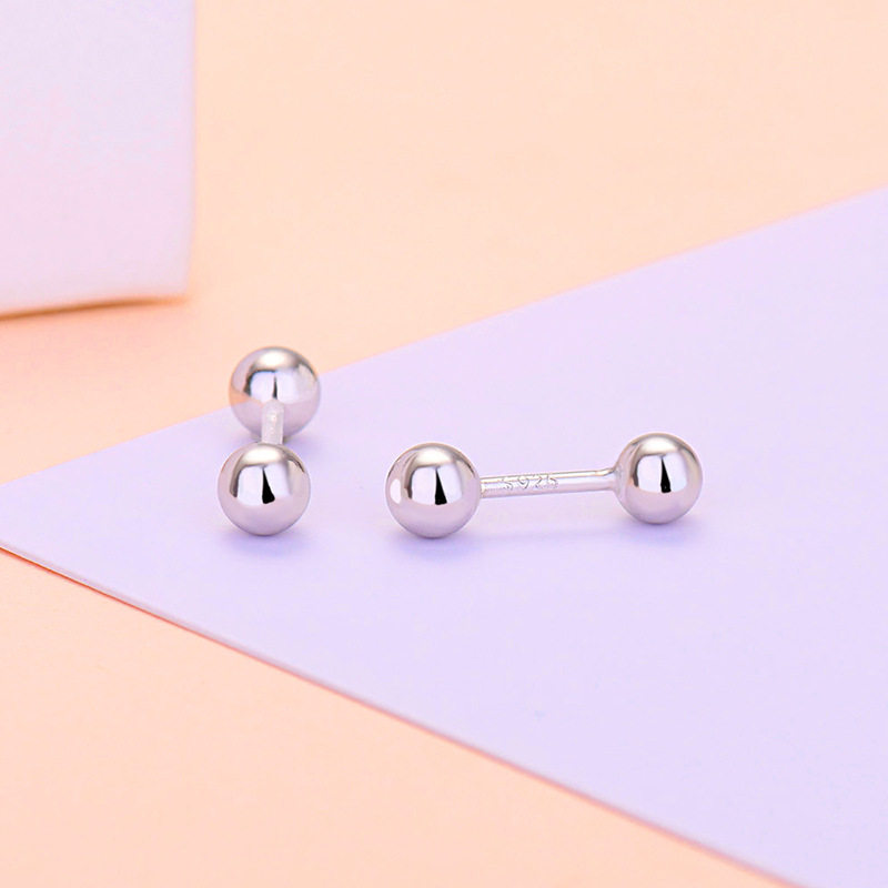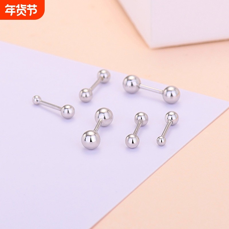 耳骨钉圆珠螺丝耳钉纯银女s925螺纹豆豆耳饰小巧精致拧扣简约气质