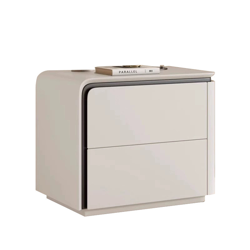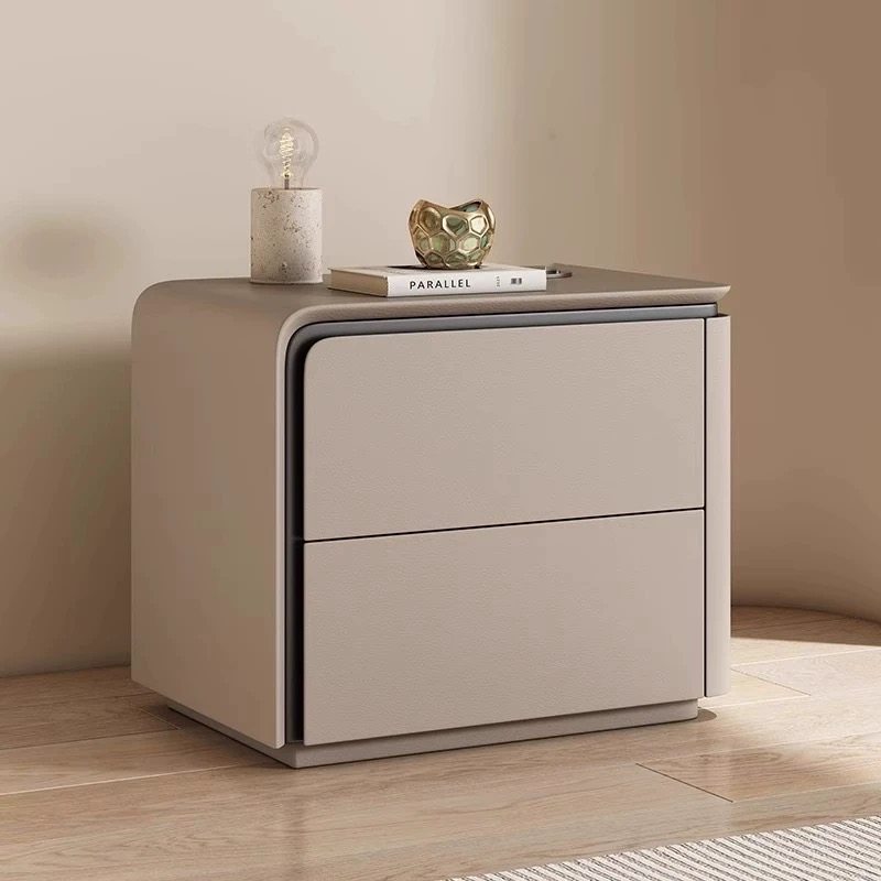 简约现代奶油轻奢实木皮质床头柜卧室高级新款储物收纳柜免安装