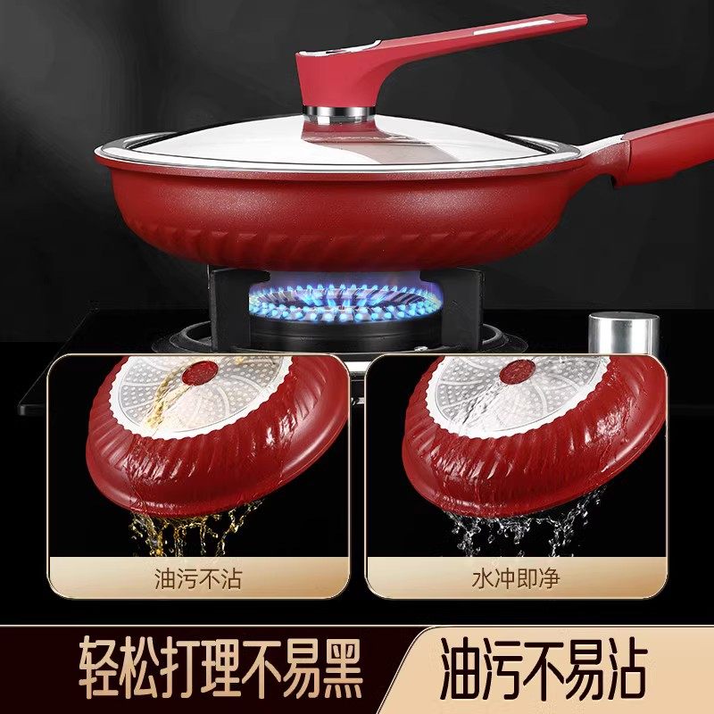 少油烟麦饭石炒锅不粘锅平底家用炒菜锅闪闪电磁炉燃气灶牛排煎锅