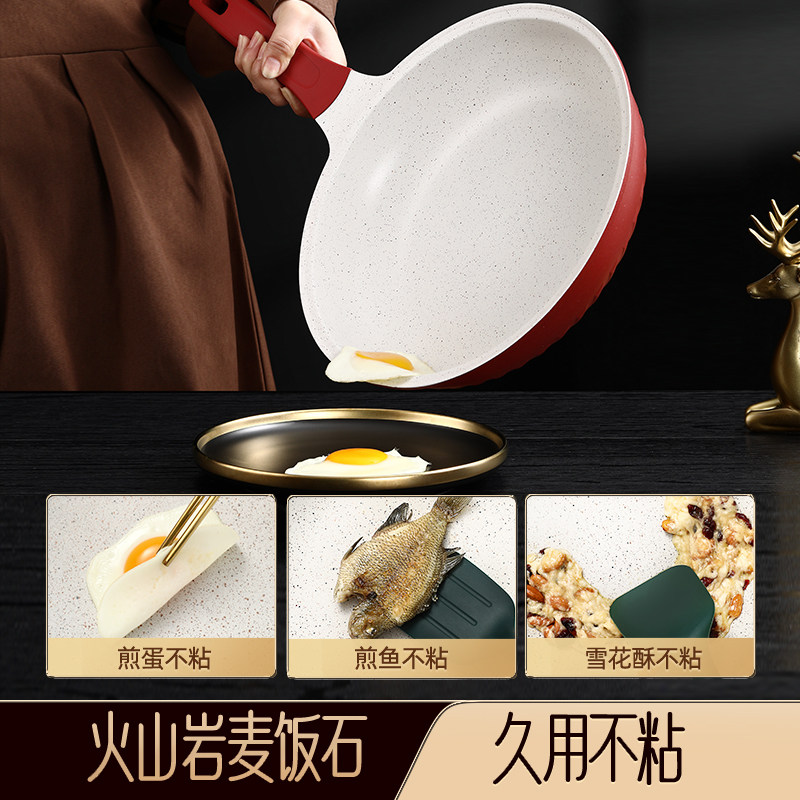 钛红芯控温平底锅不粘锅家用无涂层炒菜煎蛋牛排电磁炉专用深煎锅