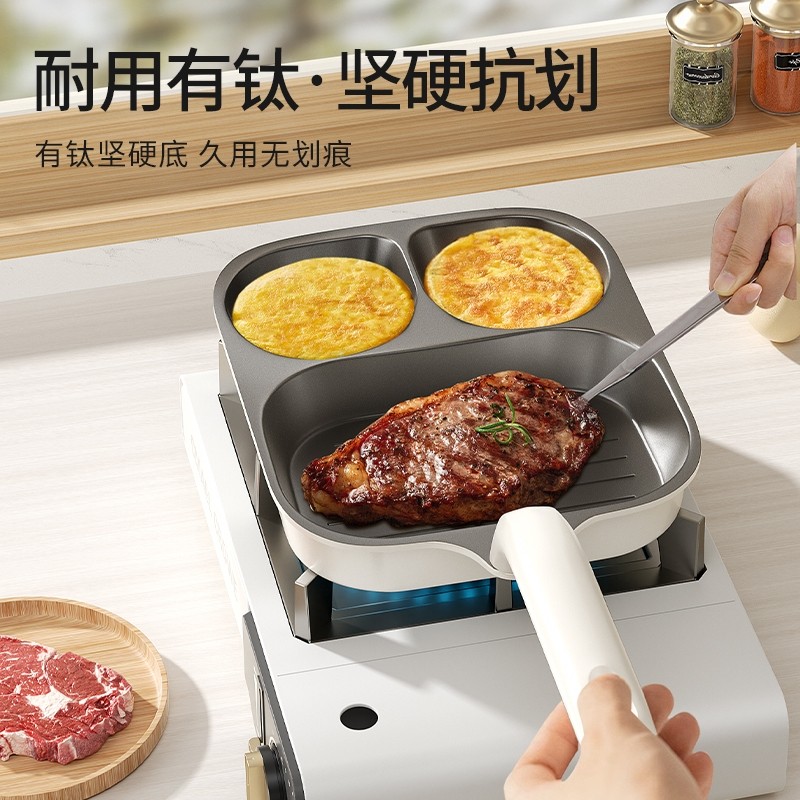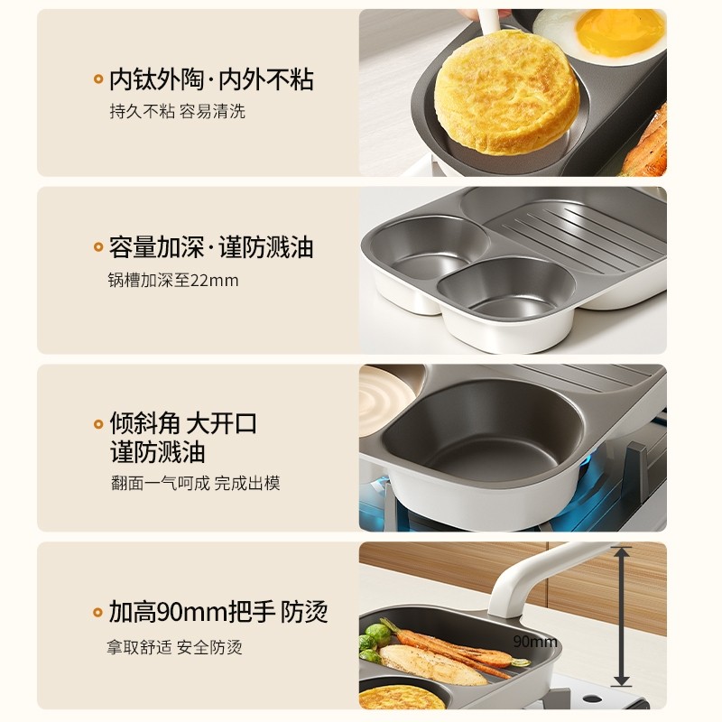 钛陶瓷早餐锅三合一煎蛋锅家用煎蛋神器鸡蛋汉堡锅不粘锅牛排煎锅
