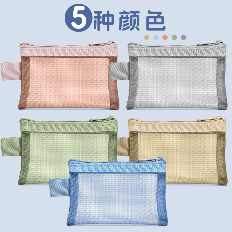 迷你便携透明网纱零钱袋尼龙袋拉链袋卡片小件物品耳机收纳袋硬币零钱包女身份证件银行卡袋子随身钥匙卡包