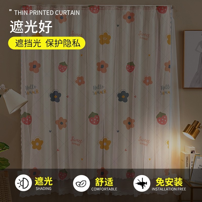 魔术贴简易窗帘自粘式免打孔安装出租房遮光布卧室宿舍遮阳小窗户