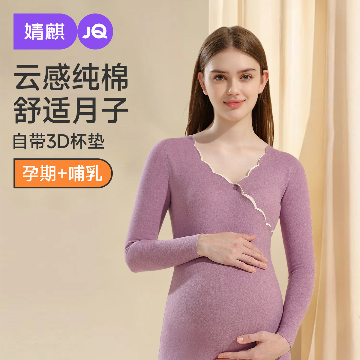 婧麒孕妇秋衣秋裤套装保暖内衣孕期打底产后哺乳喂奶大码月子服冬
