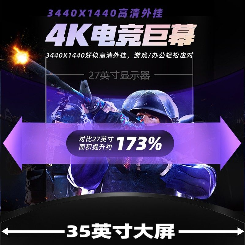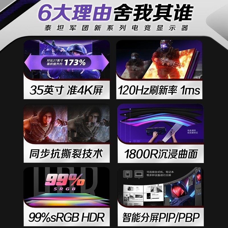 泰坦军团 34寸4K120Hz曲面带鱼屏显示器