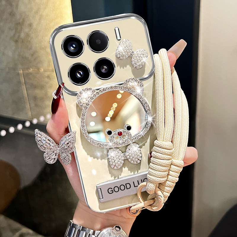 适用小米15手机壳小米15pro领结熊补妆镜小米14大视窗外壳创意小米13全包防摔网红女款