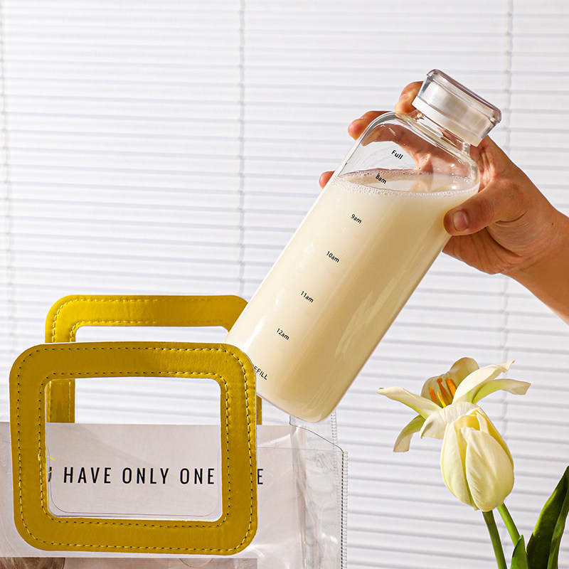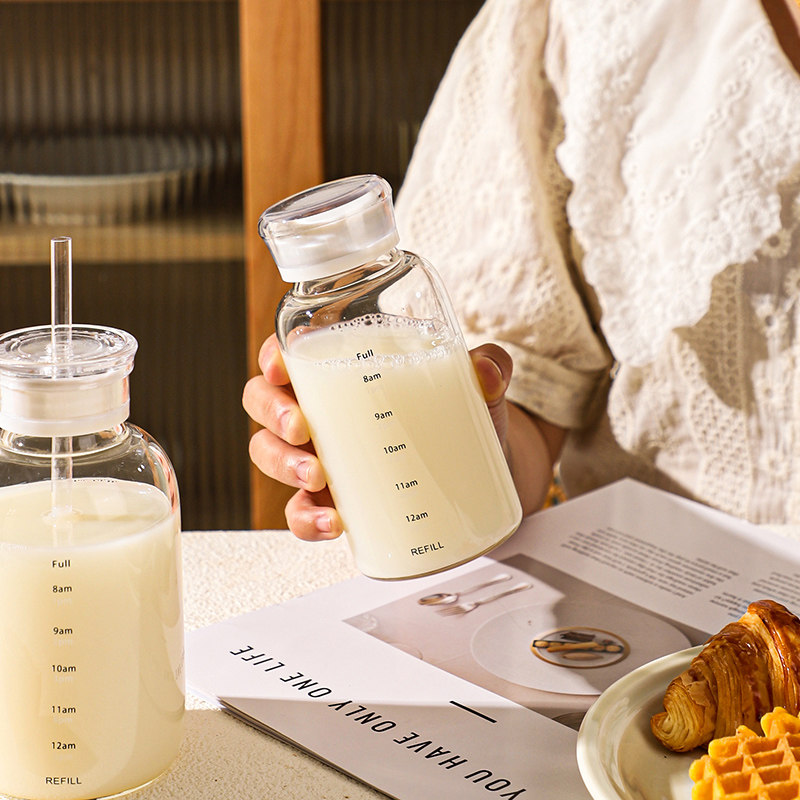 舍里可加热牛奶瓶家用豆浆杯外带早餐杯子便携果汁杯刻度玻璃水杯