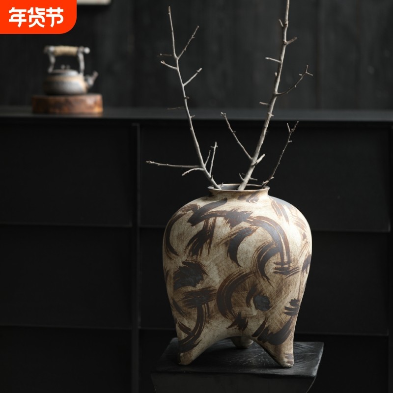 景德镇侘寂风陶瓷花瓶复古怀旧粗陶罐新中式花器酒店民宿家居摆件