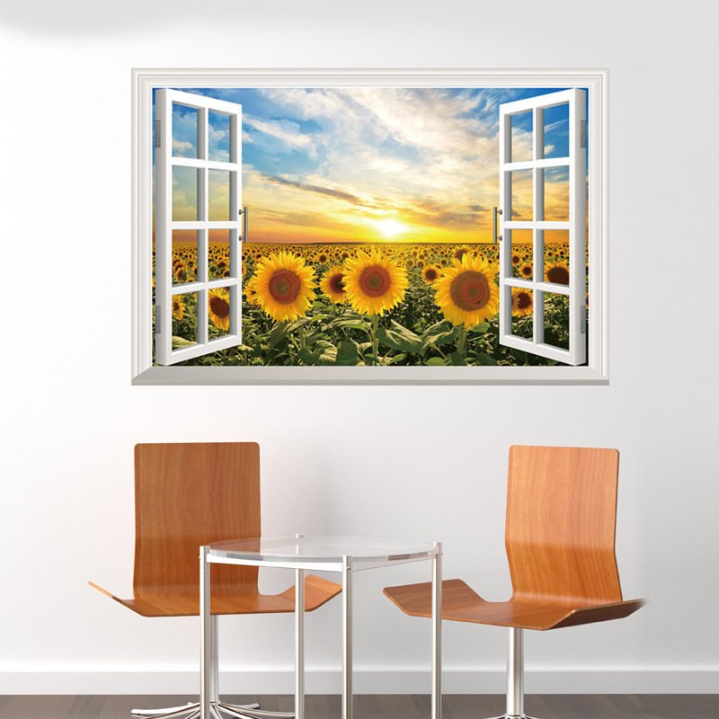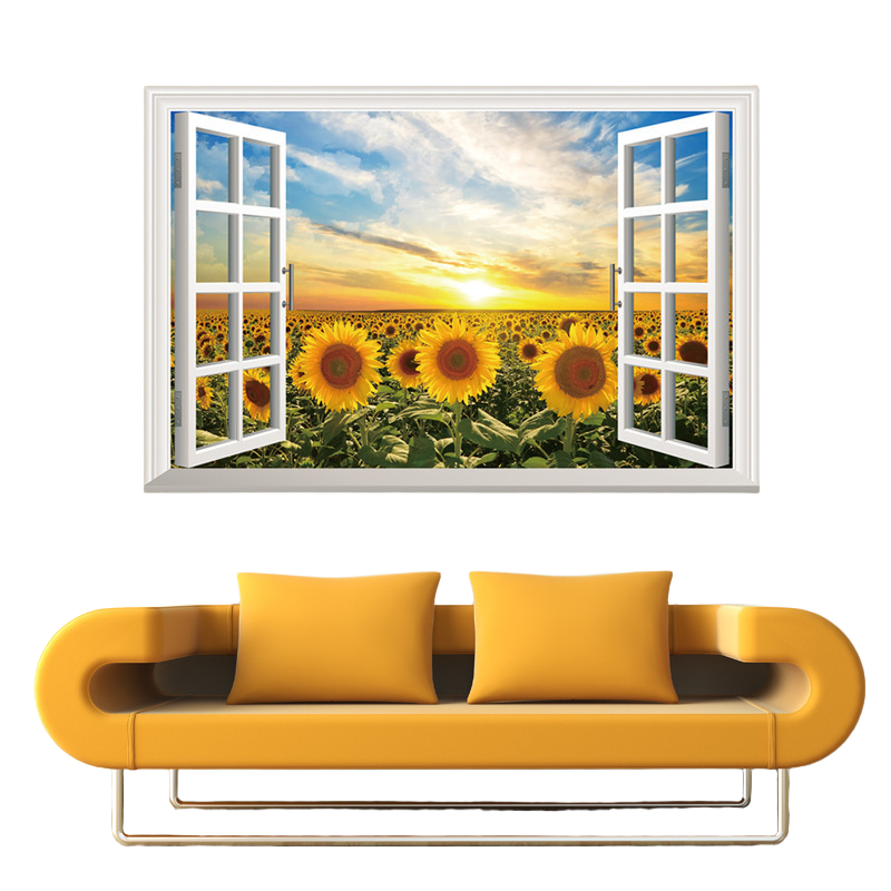 外贸新款墙贴 假窗户朝阳向日葵 家居背景 可移除贴纸DLX0996